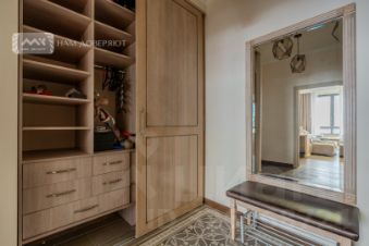 В квартире множество мест для храниия: в холле установлены два глубоких шкафа-купе, оборудована гардеробная в одной из спален и шкаф во второй.