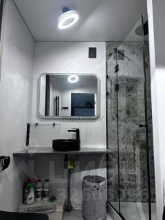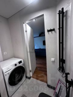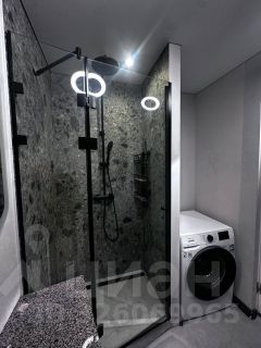Санузел совмещенный, с душевой кабиной, теплым полом и стиральной машинкой.
