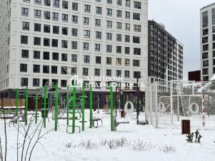 - Двор закрытый, в нем расположены детские площадки, футбольная площадка и места отдыха жильцов. Есть подземный паркинг.