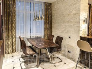 Полы паркетная доска и плитка, в санузлах установлен тёплый пол. Окна выходят во двор и на улицу, северо-запад и юго-восток.