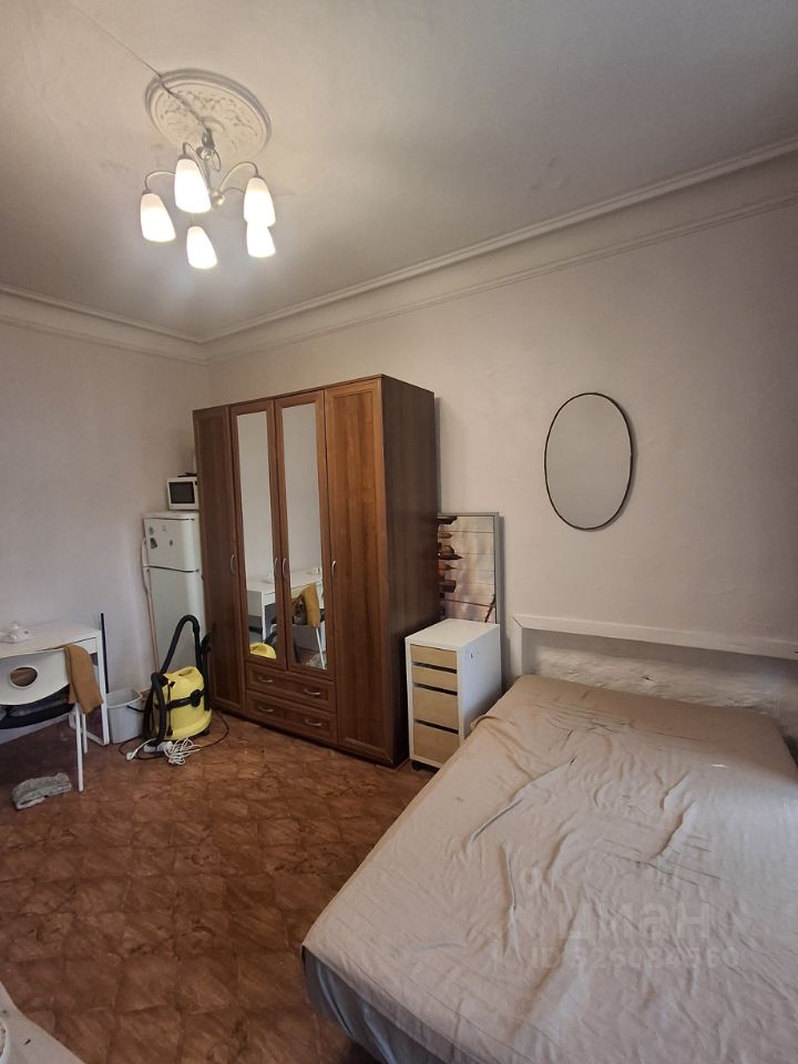 В комнате есть все необходимое для жизни: кровать, письменный стол, стулья, большой шкаф, столик и тумбочка, микроволновка, чайник, холодильник. В квартире раздельный санузел.