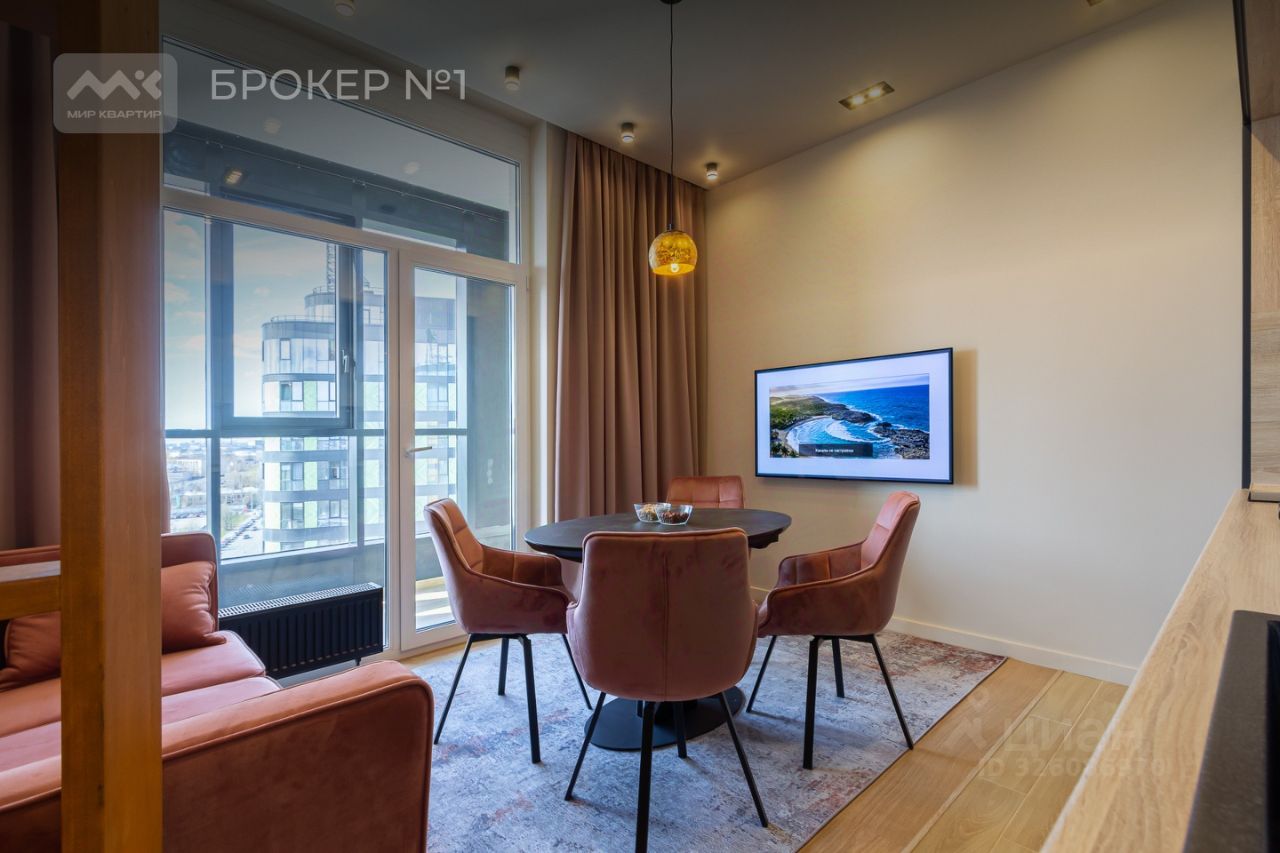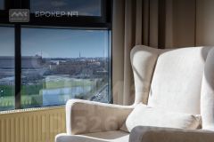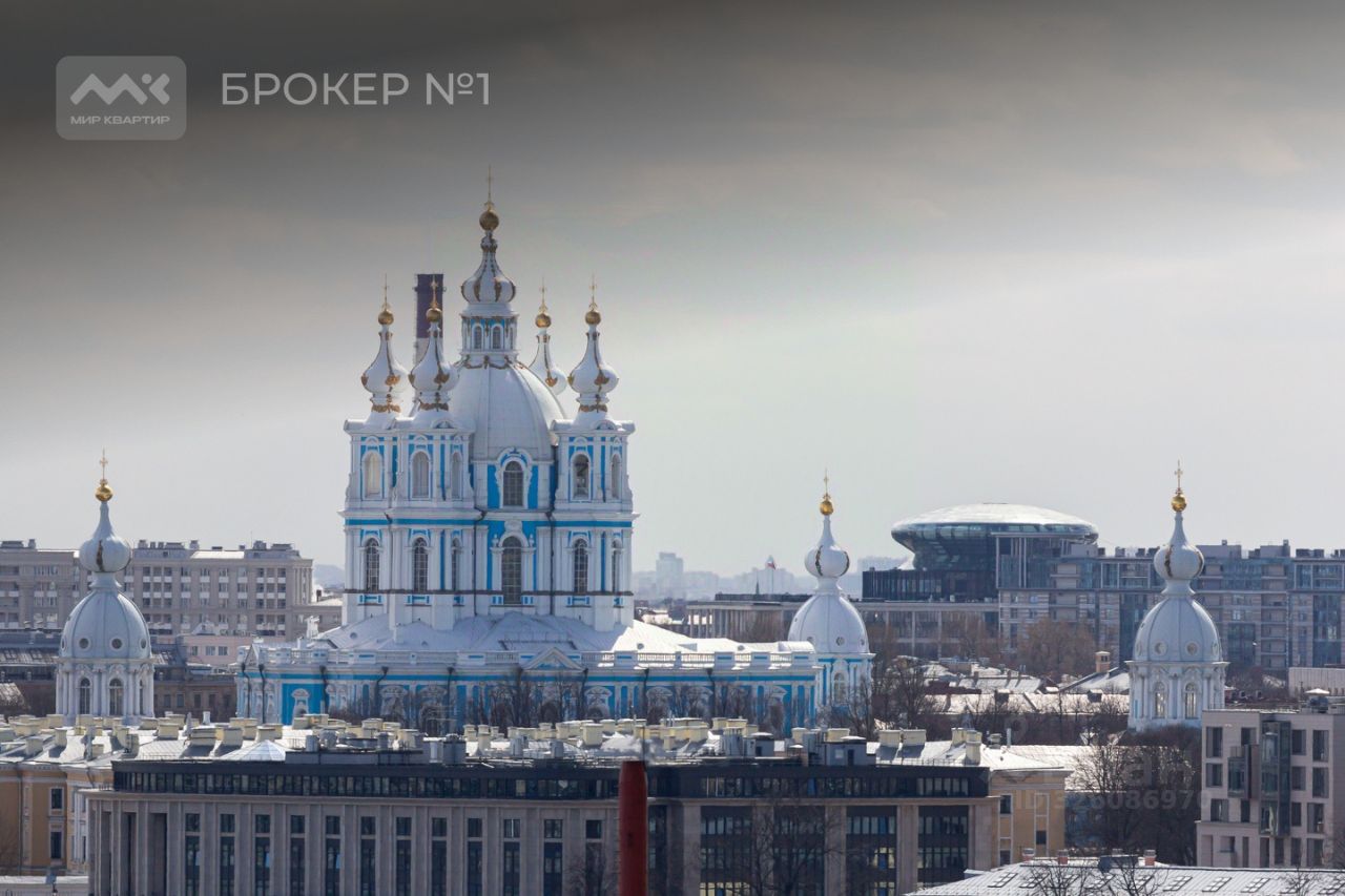Квартира расположилась на 12-м этаже, общей площадью 75 м2, потолки высотой 3 метра, уютная кухня с выходом на лоджию 6 м2, две изолированные спальни, гардеробная. Панорамные окна смотрят на Юго-Запад, видно излучину Невы, мост Петра Великого, Исаакиевский собор, стадион Зенит, башню Лахта центра. Прямой вид на Смольный собор!