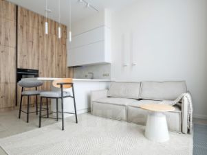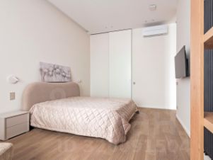 Общая площадь квартиры 55 кв. м., функциональная планировка включается в себя спальню, кухню и гостиную. Гардеробная. Шкаф для верхней одежды при входе. Совмещенный сан. узел с душевой. Ремонт выполнен в современном стиле по дизайн-проекту, использованы дорогостоящие отделочные материалы и предметы интерьера европейских дизайнеров. Вся мебель и техника новая. Квартира без амортизации.