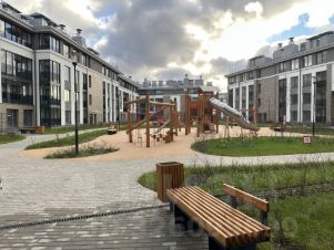 1 этаж вход с улицы, окна выходят и балкон во дворе и есть даже не большой участок газона перед балконом