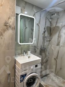 Ванная с душевой кабиной и стиральной машиной