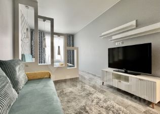 - выделенная гостевая зона с раскладывающимся диваном и большим ТВ,