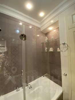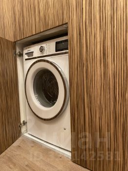 Туалет с гигиеническим душем и раковиной. Есть бойлер. Ванная комната с раздвижной стеклянной перегородкой, раковина, зеркало подсветкой, шкаф с выдвижной корзиной для грязного белья. Стиральная машина Siemens IQ-800 установлена в коридоре.