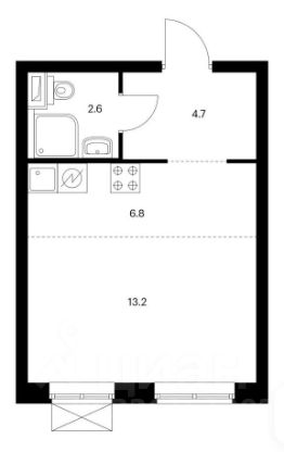 Квартира светлая, в студии два окна, можно сделать зонирование ( на кухонную зону и зону отдыха) . Установлен кухонный гарнитур, стеклянный стол, вешалка для вещей в прихожей. У вас есть возможность заехать в студию и проживать со своей мебелью и спать на своей кровати. Просторный совместный СУ с душевой кабиной.