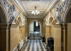 Вход в квартиру осуществляется с очень красивой парадной, с улицы. На этаже нет никаких других помещений. Окна выходят на спокойный зеленый двор.