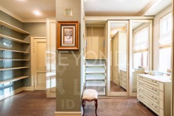 Дом включает четыре уровня с лифтом и объединяет две автономные функциональные половины. На цокольном уровне — SPA-зона с бассейном, сауной, хаммамом и холодильной комнатой для хранения меховых изделий.