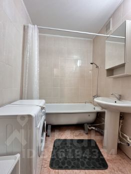 Санузел раздельный, с большой ванной, установлена стиральная машинка.