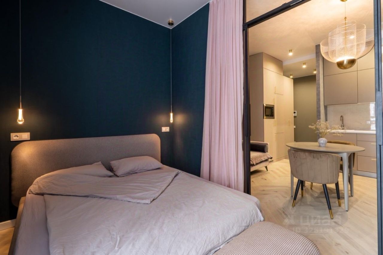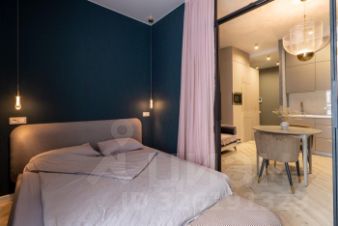 Стильная студия с дизайнерским ремонтом и собственной кухней. Расположена прямо на набережной Невы в ЖК бизнес класса Эталон на Неве.