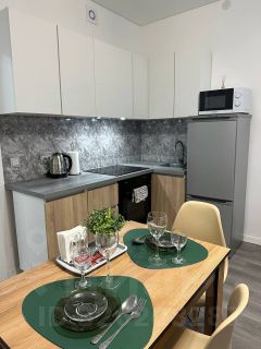 кухня со всей необходимой техникой и домашней утварью