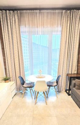 Апартаменты оснащены всем необходимым кухонным и сантехническим оборудованием, а также мебелью. В квартире панорамное остекление от компании Reynaers Aluminium, что позволит будущим жителям наслаждаться видами.