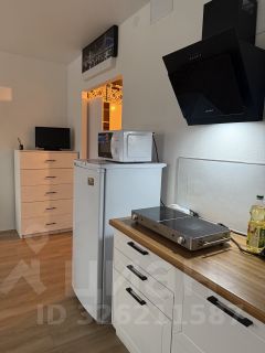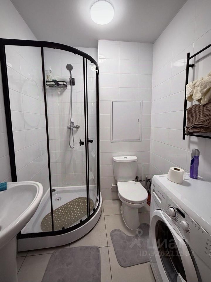 - Удобства и техника: Квартира оборудована всеми необходимыми бытовыми приборами: кроватью, холодильником, телевизором, раковиной, микроволновой печью, чайником, душевым кабинетом, стиральной машиной и сушилкой, шкафами и тумбочками.