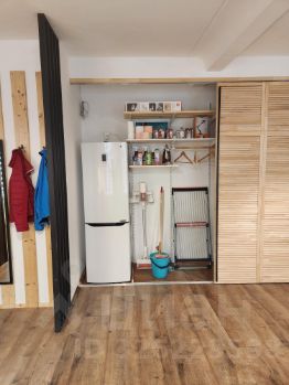 Для хранения бытовых вещей и гардероба предусмотрен большой шкаф-купе, там же прячется домашняя утварь и пылесос