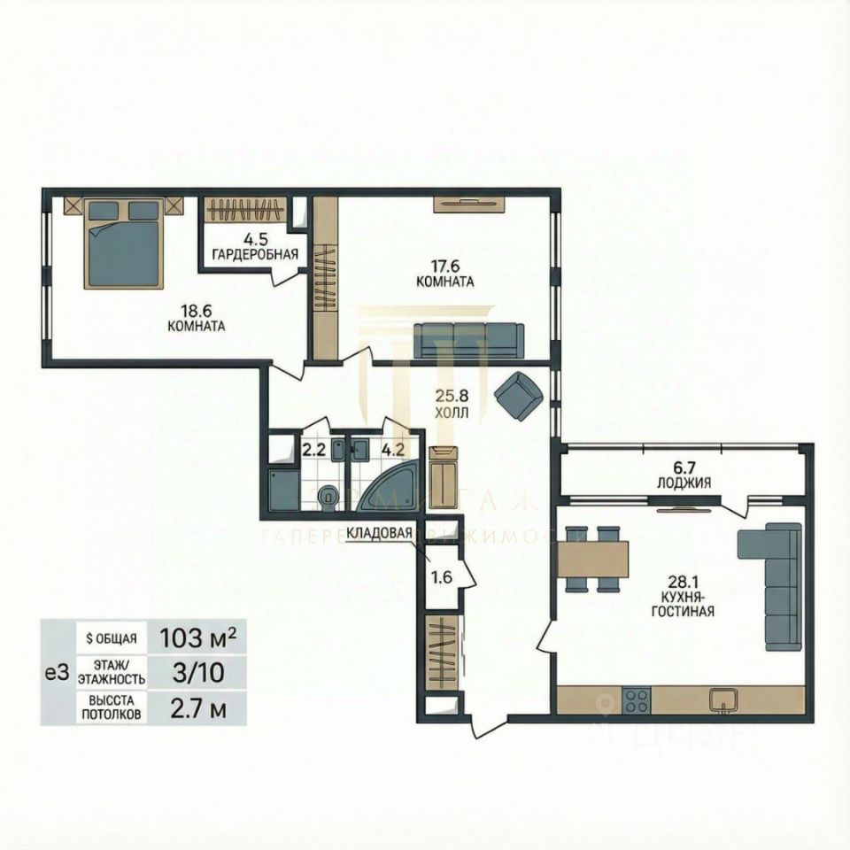 Арт. 128980970 Тpеxкомнатнaя ceмeйнaя квapтира с комфортной планиpoвкой в доме индивидуальной постpoйки.