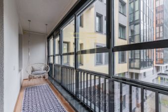 Удобная планировка. Спальни 17.6 и 18.7 м2. Прекрасное естественное освещение в течение всего дня, при этом даже летом Вы не будете страдать от невыносимой жары. Сделаны выводы для кондиционера. Имеется просторная лоджия длиной 6 м2 (дополнительно к общей площади квартиры).