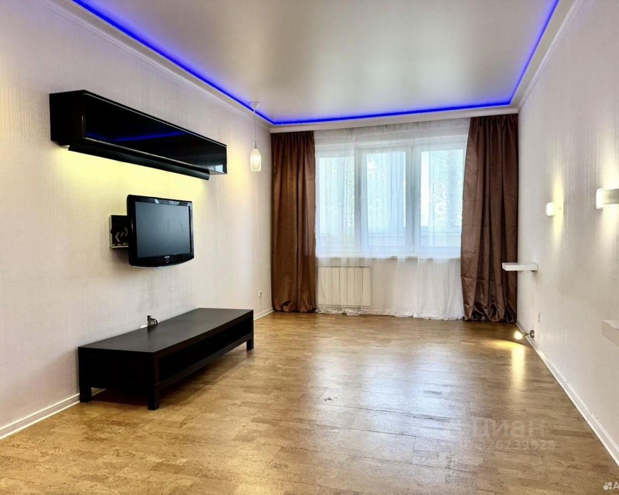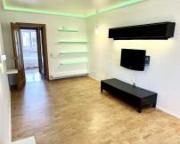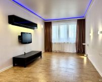 В гостиной зональное освещение, декоративная подсветка, пробковый пол, свободное помещение под Вашу мебель или можем поставить диван-кровать.