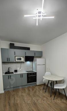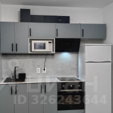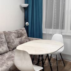 Кухня-гостиная служит основным пространством для отдыха и приема гостей, что делает жилье более функциональным и просторным. Гостиная зона оборудована стильным диваном с механизмом трансформации "тик-так", двумя стеллажами для хранения личных вещей и телевизором. Кухня оснащена всей необходимой техникой, включая холодильник, варочную панель, духовой шкаф с конвекцией и грилем, вытяжку и микроволновку.
