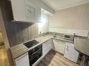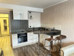 Студия оборудована всем необходимым для комфортного проживания: кухонный гарнитур с варочной панелью, духовым шкафом и вытяжкой, чайник, холодильник, микроволновая печь, телевизор, двуспальная кровать, большой шкаф, кресло.