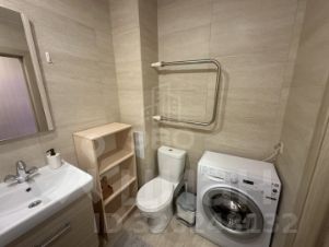 Санузел совмещенный, установлена стиральная машина.