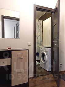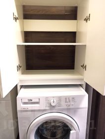 Санузел совмещенный, оснащен ванной, стиральной машиной, местами хранения полотенец, средств по уходу и косметики.