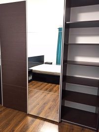 Много мест для хранения: шкаф-купе, комод, ящики под кроватью.