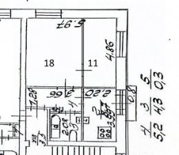 • площадь: 47,5 кв. м (гостиная — 18 кв. м, спальня — 11 кв. м, кухня — 9 кв. м);