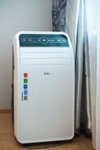 - из техники: большой телевизор с тв-каналами в большой комнате, маленький на кухне, ручной пылесос, стиральная машина, утюг, принтер, весы, гриль, кофемашина, напольный кондиционер, робот-пылесос (нужен ремонт);