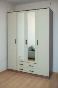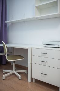 - в маленькой комнате раскладной диван, рабочее место с приртером, шкаф для вещей;