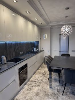 Квартира в отличном состоянии с евроремонтом. Планировка включает одну ванную комнату с ванной и душевой кабиной, а также две лоджии. В квартире есть вся необходимая техника: кондиционер, холодильник, посудомоечная машина, телевизор и стиральная машина. Мебель имеется как на кухне, так и в комнатах.Два сан узла.К квартире идет место в подземном паркинге.