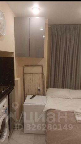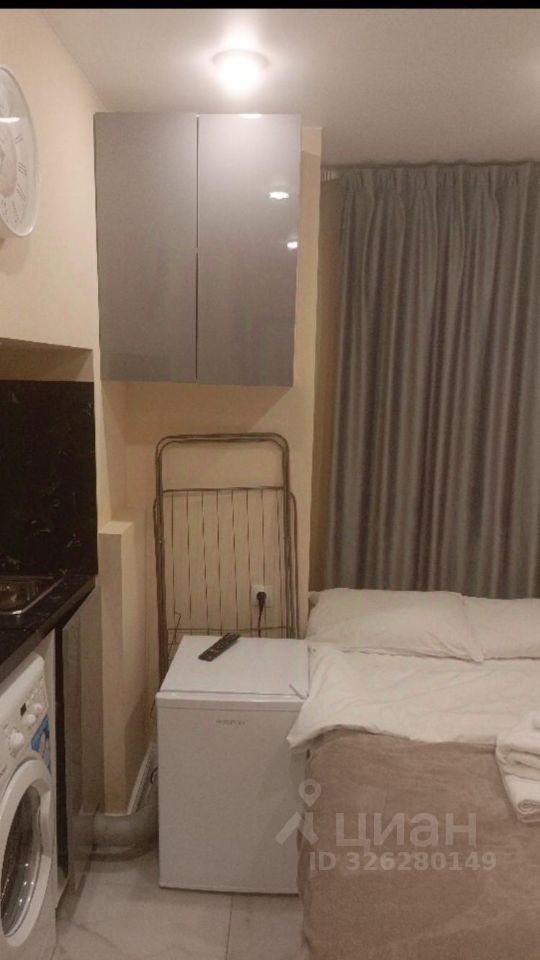 В квартире сделан евроремонт, поэтому здесь все продумано до мелочей для комфортного проживания. Студия полностью меблирована: на кухне есть все необходимое, а в комнате — удобная мебель. Из техники вы найдете холодильник, телевизор и стиральную машину. Санузел совмещенный, в нем установлена современная душевая кабина.