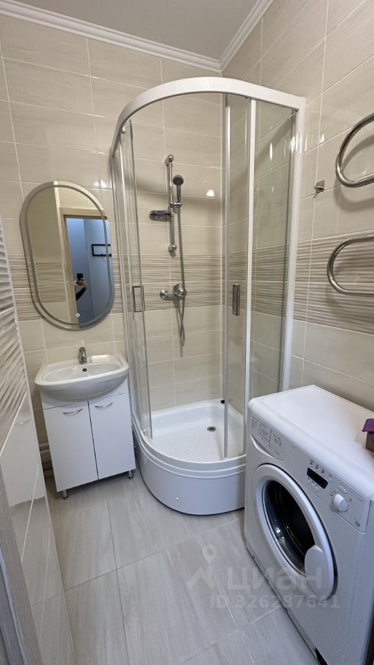 Ванная и туалет с новым ремонтом. Стиральная машина. Зеркало.