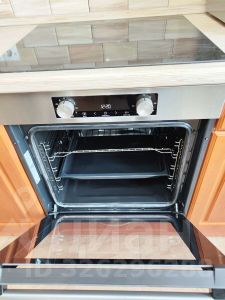 В кухня 11 м2 есть все необходимое для проживания: кухонная мебель, холодильник, микроволновая печь, плита электрическая, духовой шкаф и телевизор.