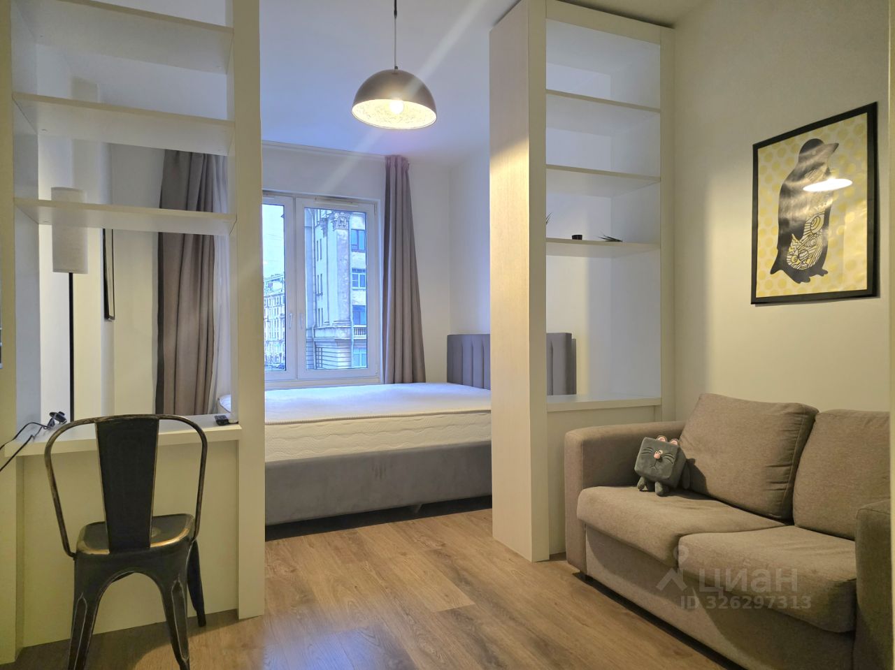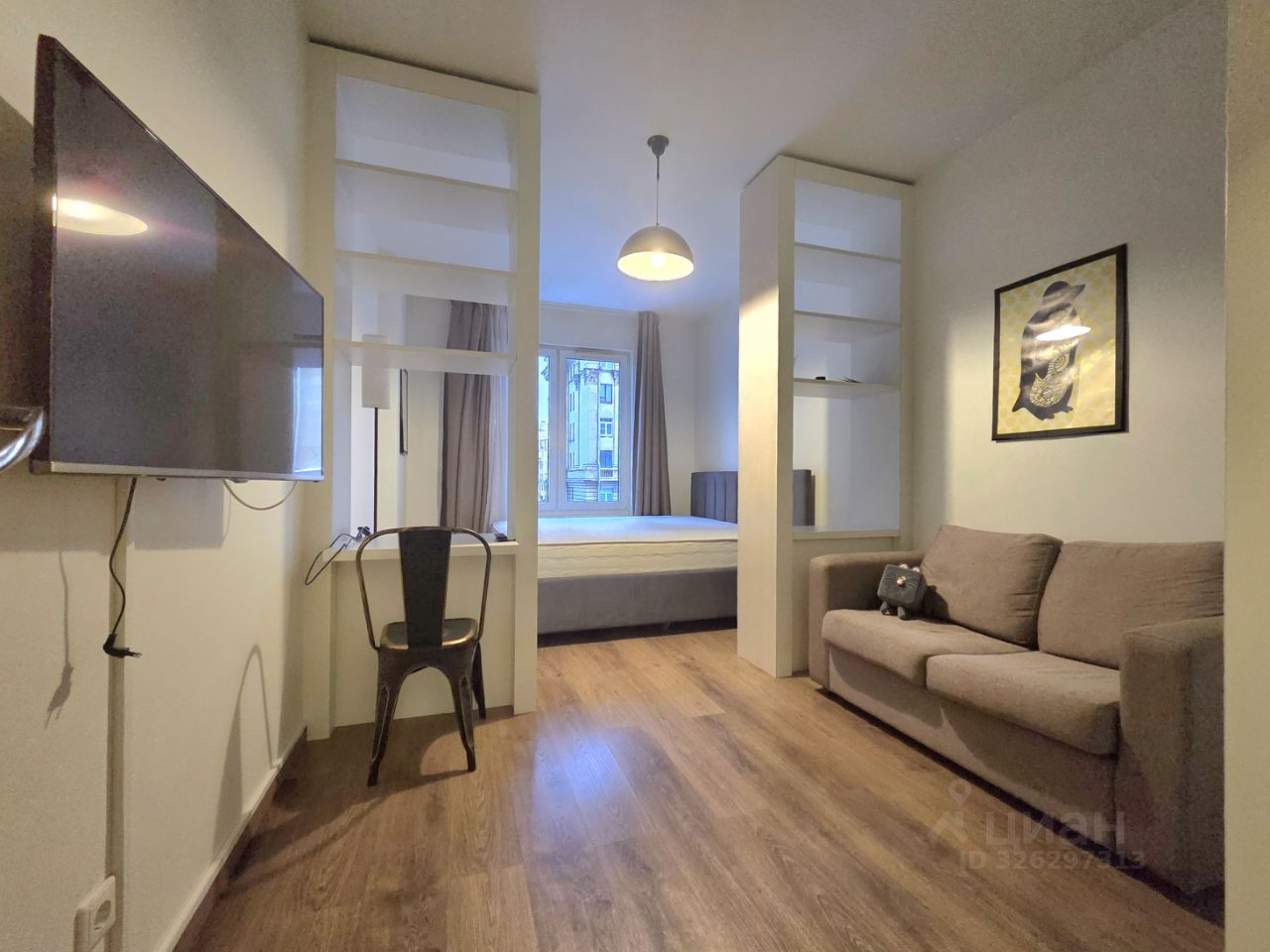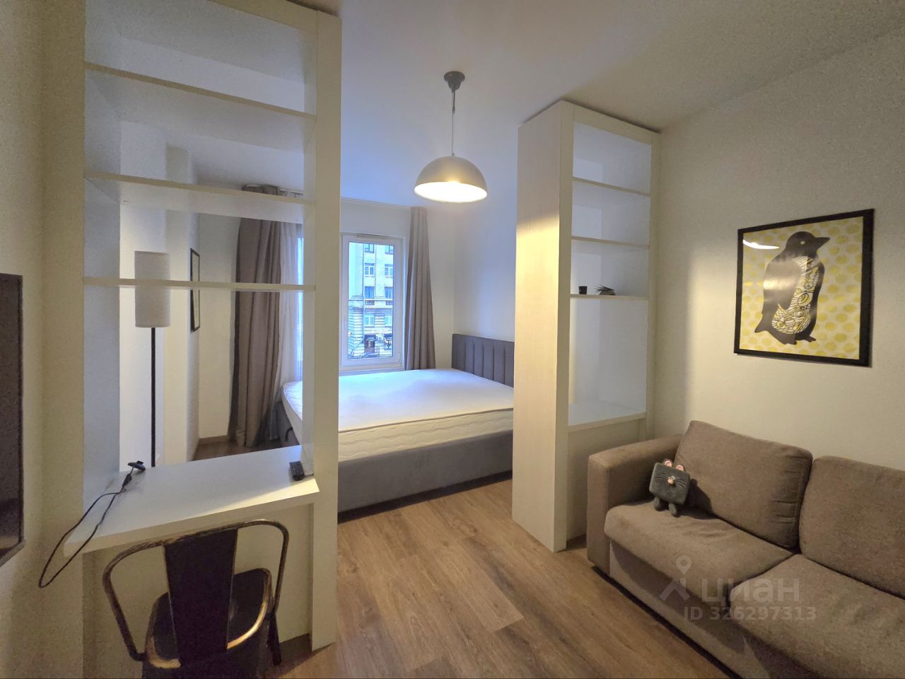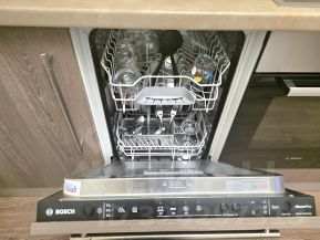 В квартире выполнен современный ремонт в стиле Финский минимализм. Есть все необходимое для проживания. Жилая комната поделена на зону спальни и гостиной. Здесь расположены: раскладной диван, очень большая кровать с анатомическим матрасом, рабочий стол, шкаф-купе. На кухне имеется встроенная техника Bosch, включая стиральную и посудомоечную машины. Также имеется мелкая бытовая техника. С/у раздельный, чугунная ванна. В коридоре есть также шкаф-купе, пуф. Имеется лоджия.