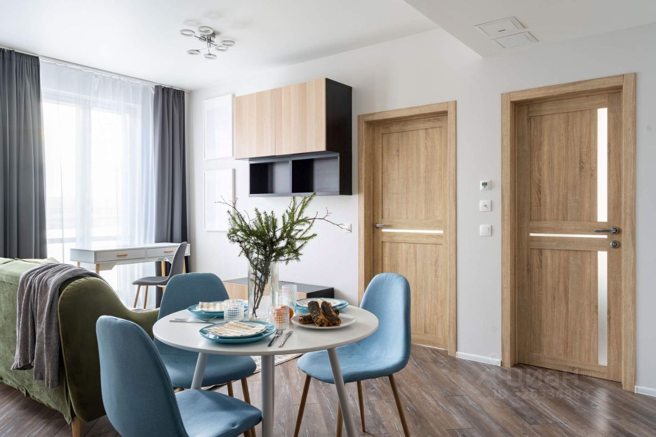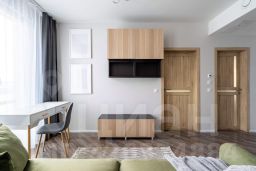 Удобная для жизни планировка: прихожая плавно перетекает в почти тридцатиметровое пространство кухни-гостиной, где уместились зоны готовки и отдыха, круглый обеденный стол, объемные шкафы и даже рабочий уголок. Из гостиной можно пройти в уединенную, отделенную от общего пространства, спальню, к которой присоединен глубокий, по-шведски спланированный балкон, легко становящийся в летнее время дополнительной комнатой. Рядом со спальней расположен большой санузел с ванной и окном. Кухня оборудована необходимой техникой. В ванной установлена стиральная машина с функцией сушки. Диван в гостиной раскладывается. В санузле оборудован теплый пол.