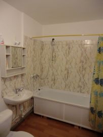 В квартире установлена кухня, новая входная дверь, есть кровать 140см с новым матрасом, диван, столы, шкаф, холодильник, микроволновая печь, стиральная машина. Ванная комната (5 метров) с ванной.