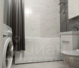 В ванной комнате полноценная ванна, стиральная машина, тумба для хранения.