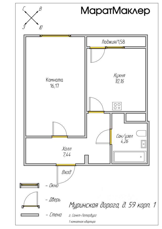 Квартира с ЛОДЖИЕЙ расположена на 6-ом этаже, действительно КОМФОРТНАЯ планировка. Квартира включает в себя: кухню-гостиную ПРАВИЛЬНОЙ ФОРМЫ - 10 м2, есть вся необходимая кухонная техника: варочная панель, вытяжка, холодильник, микроволновая печь, чайник, стиральная машина в санузле.