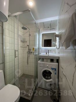 Ванная комната оборудована душевой кабиной, водонагревателем и стиральной машиной.
