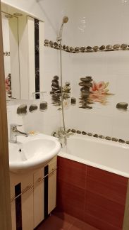 Сдаётся уютная квартира на длительный срок. Год постройки дома — 2014. В квартире выполнен евро ремонт. Просторная кухня оснащена всей необходимой техникой. Комната с местами для хранения, есть отдельная гардеробная. Санузел раздельный, что добавляет комфорта. В ванной комнате установлена стиральная машинка. Из окон панорамный вид.