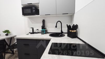 - Студия укомплектована мебелью и техникой: кухня, холодильник, плита, микроволновка, посуда, зона ТВ и телевизор, шторы, обеденная группа (стол и стулья), шкафы, полки, диван 2.30 см, придиванный столик.