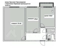 Общая площадь квартиры 57,3 кв.м., находится на 12 этаже 16-ти этажного кирпичного дома.