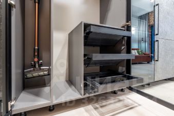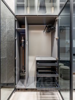 Встроенный шкаф с каменной отделкой, пантограф, штанга для одежды