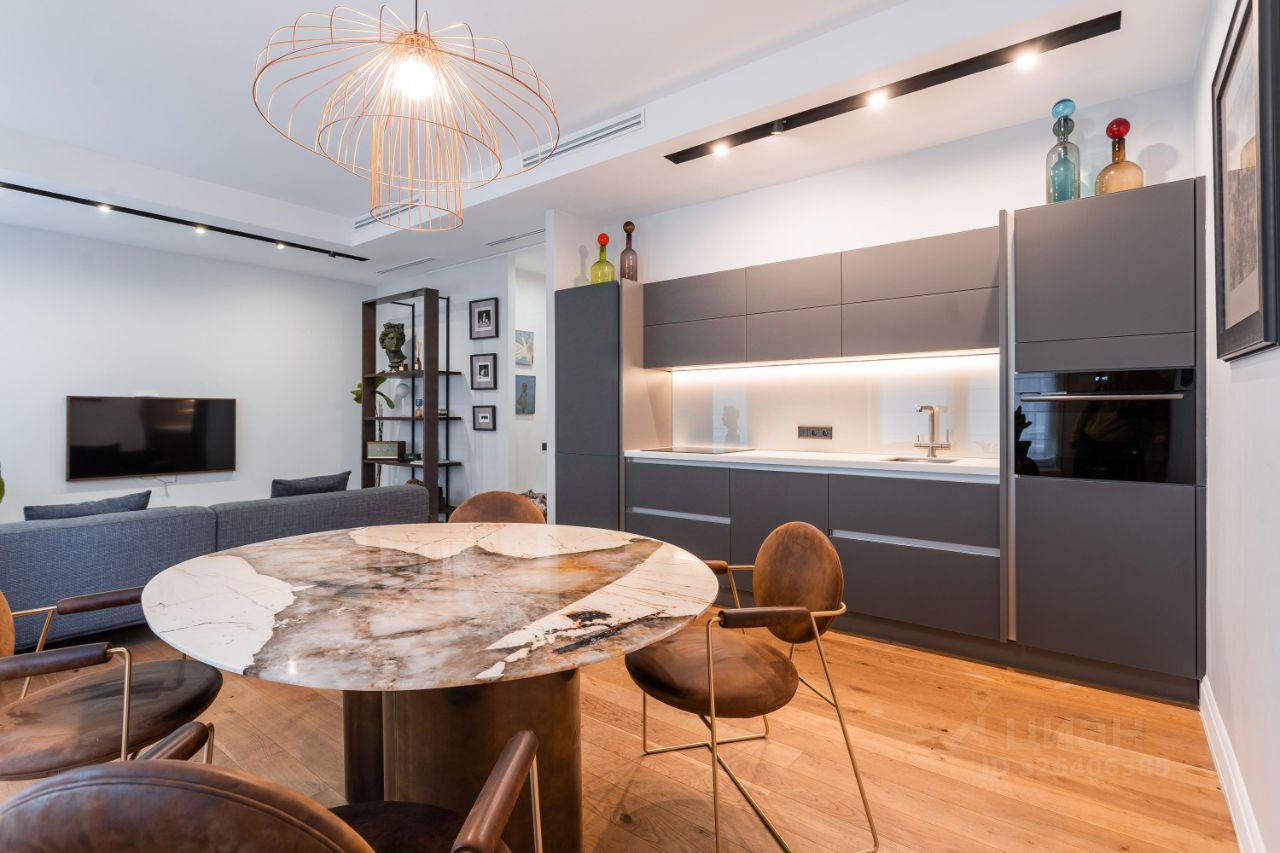 Квартира с качественным ремонтом с использованием натуральных материалов: дубовая паркетная доска, мрамор в санузлах. Установлена приточно-вытяжная система кондиционирования.