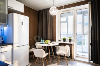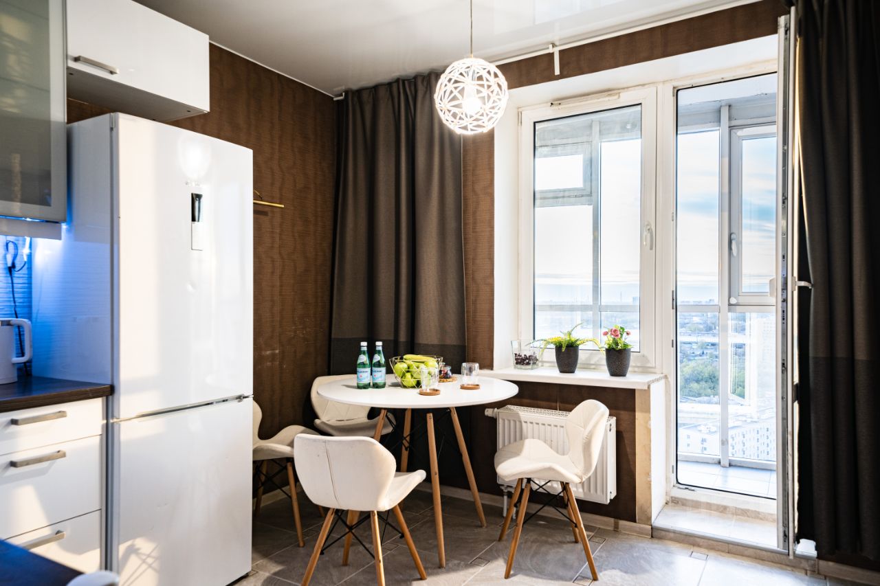 Кухня площадью 10.4 кв.м. оснащена современной техникой: духовой шкаф Electrolux, варочная панель Gorenje, холодильник Bosch, посудомоечная машина IKEA, мощная вытяжка LUX.