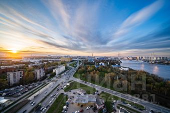 Просторный балкон 6.4 м2 с панорамным остеклением, вид на Вантовый мост и Неву. Здесь можно создать свое рабочее пространство или место для отдыха.
