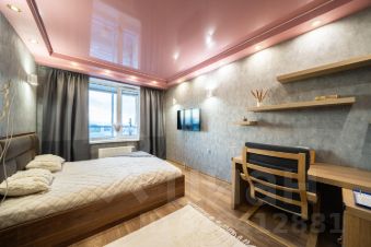 Во всей квартире установлены натяжные потолки. На полу широкоформатная плитка, в спальне - ламинат.