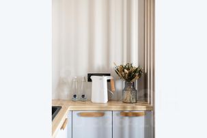 Светлый интерьер в скандинавском стиле, качественная мебель.